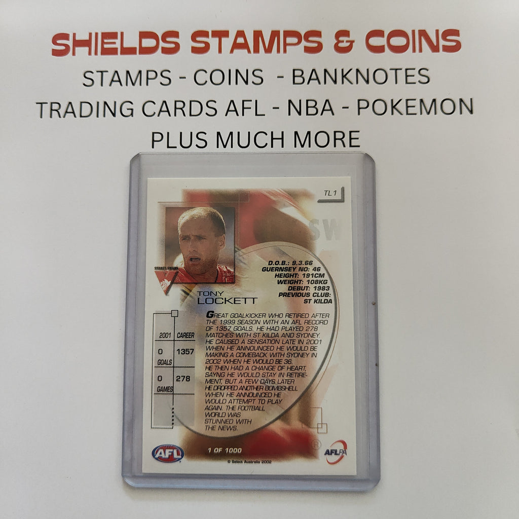 2002 Select Exclusive Second Coming Tribute Card Tony Lockett Sydney TL1