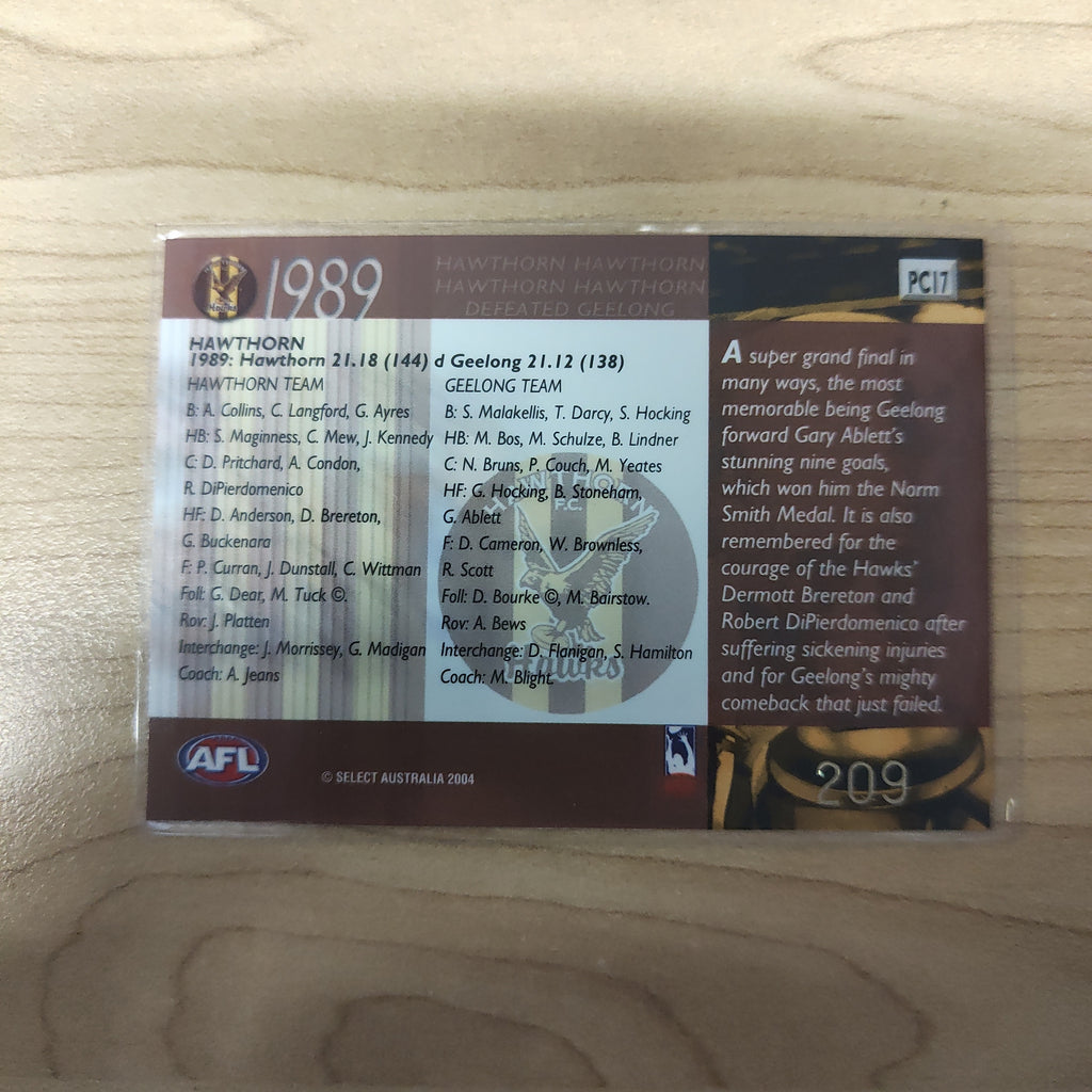 2004 Select Conquest 1989 Premiers Hawthorn No.209