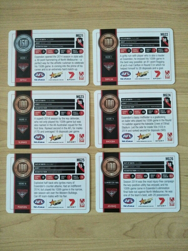 2015 Select Milestones Essendon Bombers Team Set MG21-26