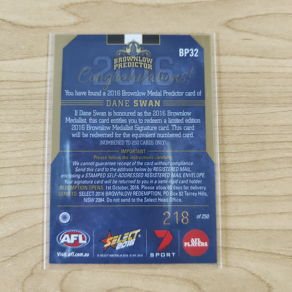 2016 AFL Select Brownlow Predictor Dane Swan Collingwood No.218/250
