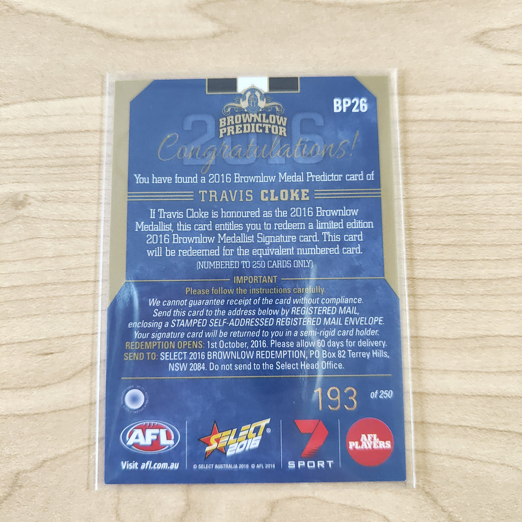 2016 AFL Select Brownlow Predictor Travis Cloke Collingwood No.193/250