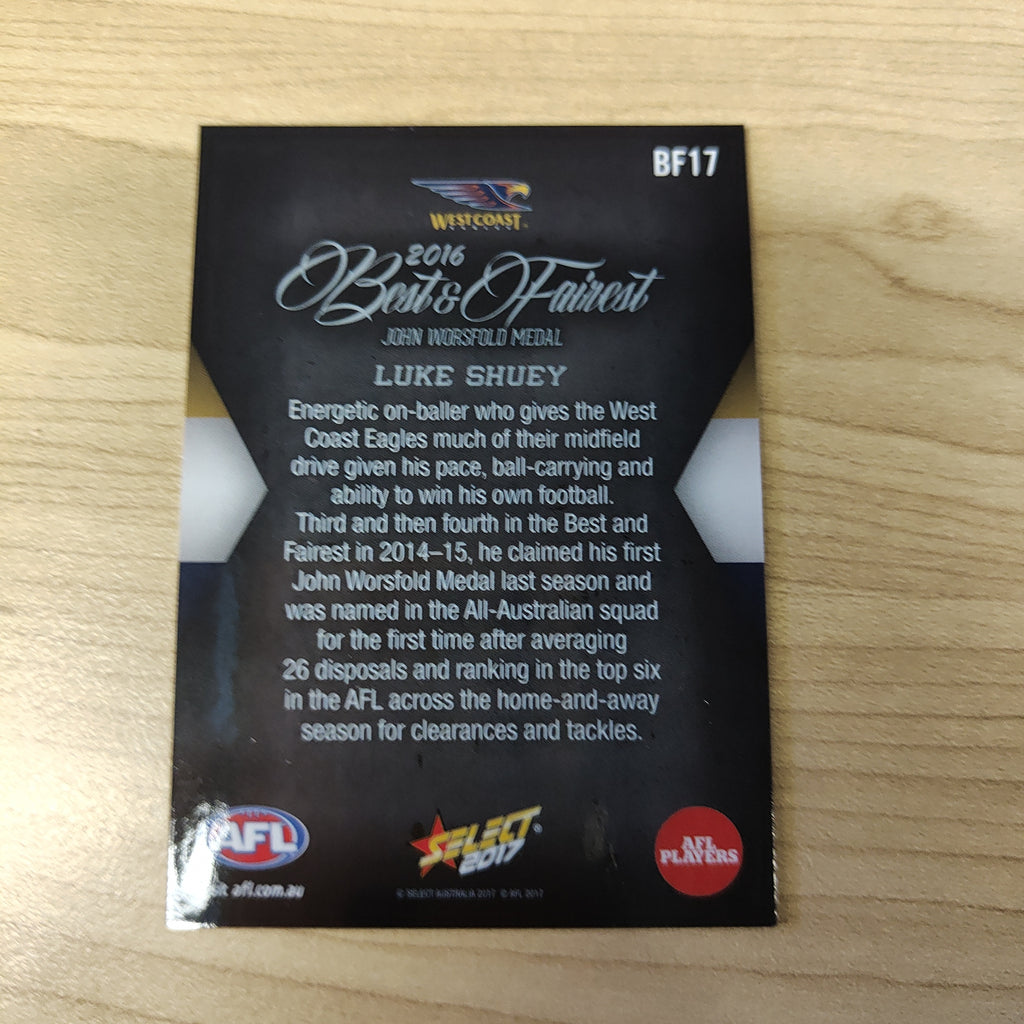2017 Select AFL Best & Fairest Card Luke Shuey West Coast