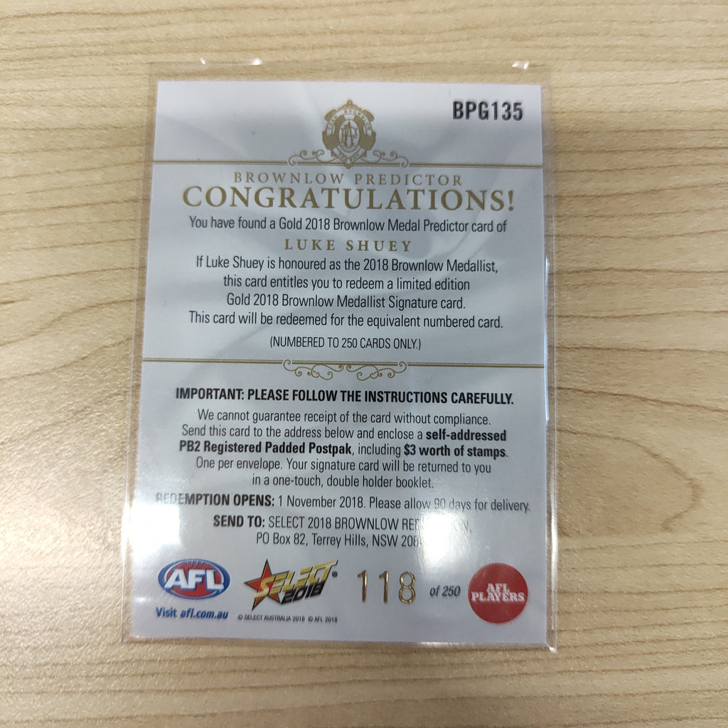 2018 Select Footy Stars Gold Brownlow Predictor Luke Shuey West Coast 118/250
