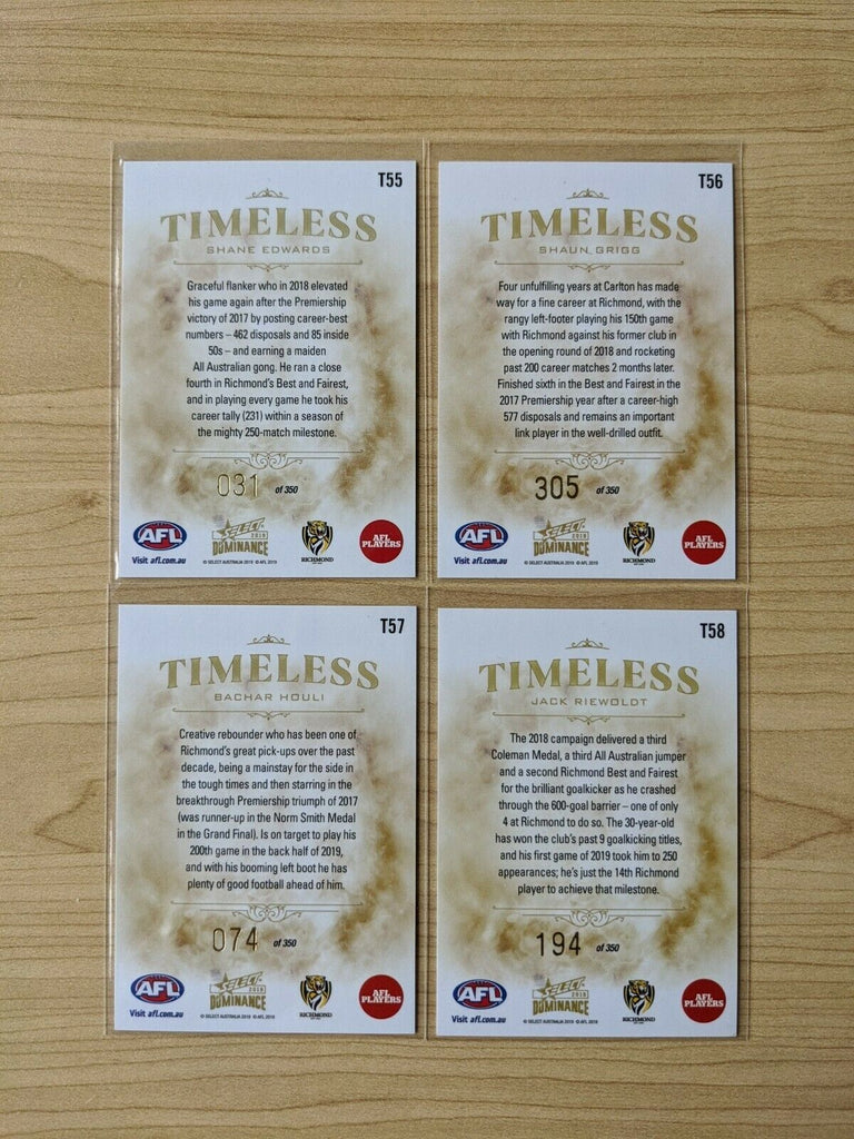 2019 Select Dominance Timeless Richmond Four Cards Edwards, Grigg, Houli, Riewoldt. Condition is "New".