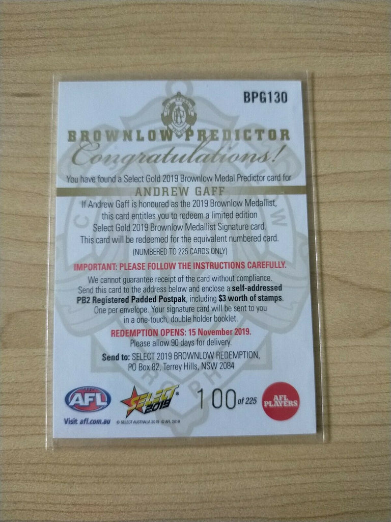 2019 Select Gold Brownlow Predictor Andrew Gaff West Coast