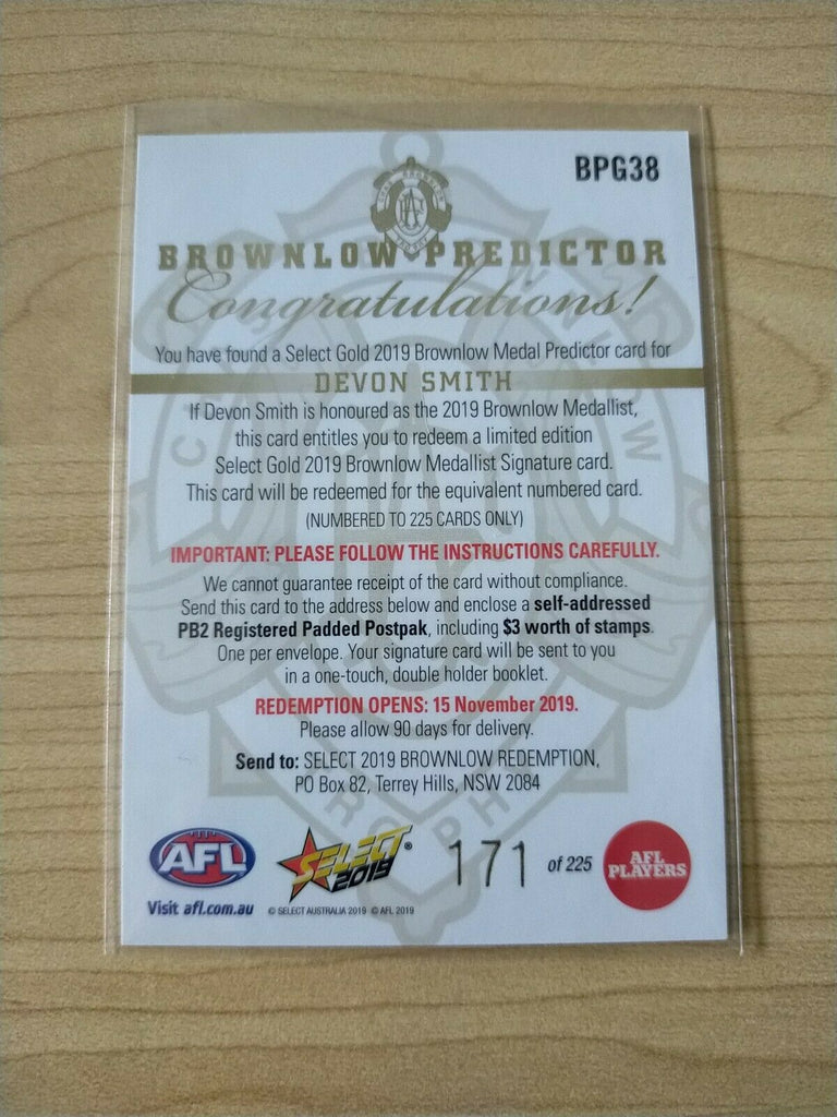 2019 Select Gold Brownlow Predictor Devon Smith Essendon