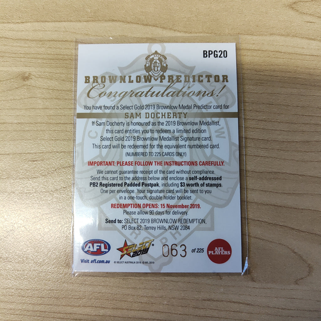 2019 Select Gold Brownlow Predictor Sam Docherty Carlton