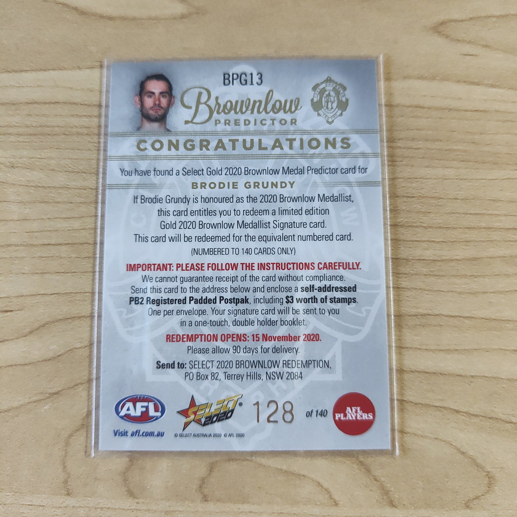 2020 AFL Select Brownlow Predictor Brodie Grundy Collingwood No.128/140