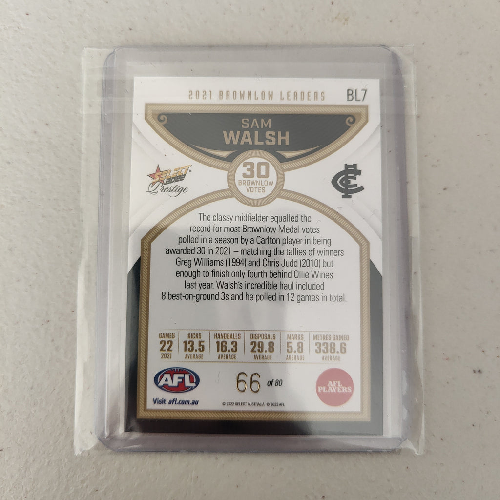 2022 Select Prestige Brownlow Leaders Sam Walsh Carlton 66/80