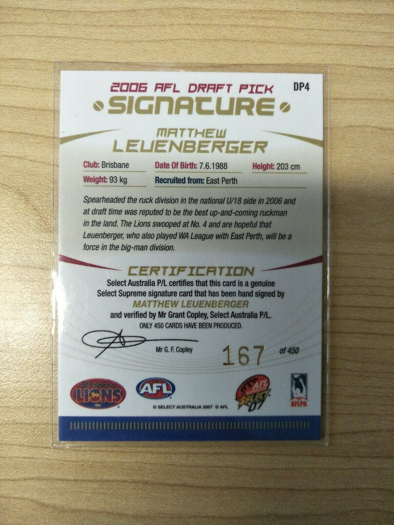 2007 Select Supreme Draft Pick Matthew Leuenberger Signature Brisbane No.167/450