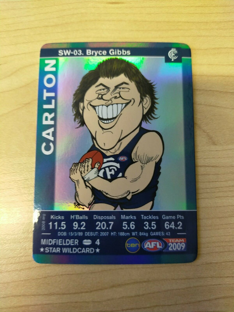 2009 Teamcoach Star Wildcard Printing Error Card Bryce Gibbs Carlton