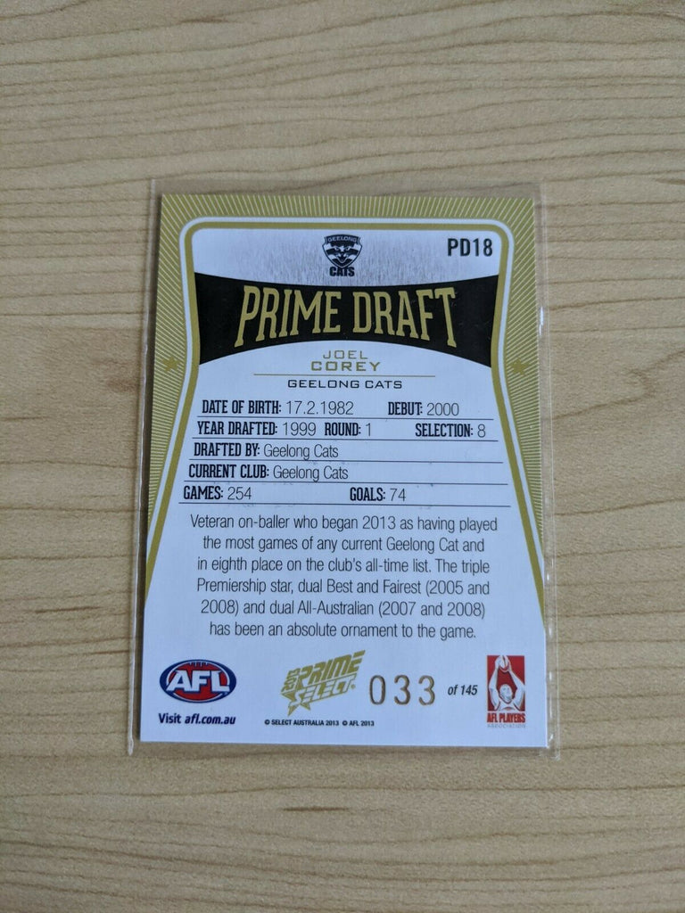 2013 AFL Prime Draft Pick PD18 Joel Corey Geelong. Condition is Used. Sent with Standard Delivery - Registered.