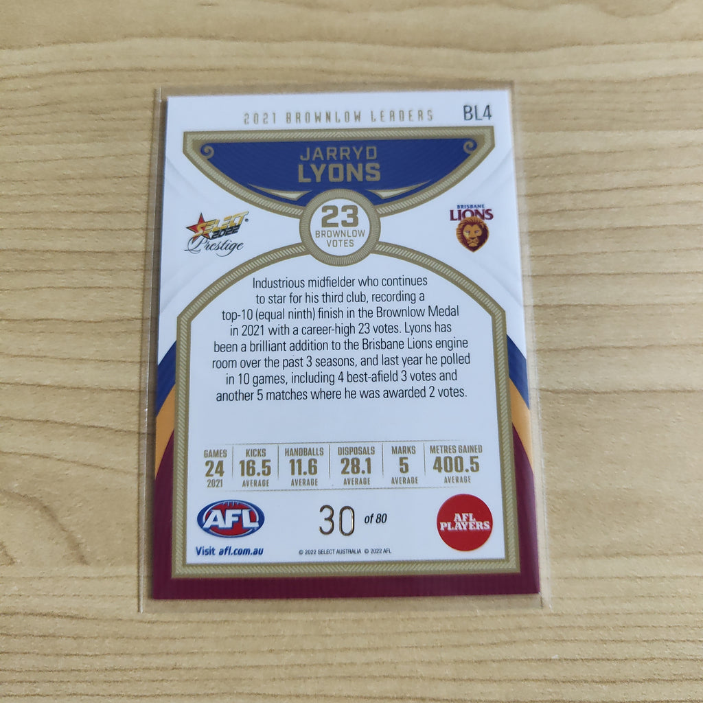 2022 Select Prestige Brownlow Leaders Jarryd Lyons Brisbane 30/80