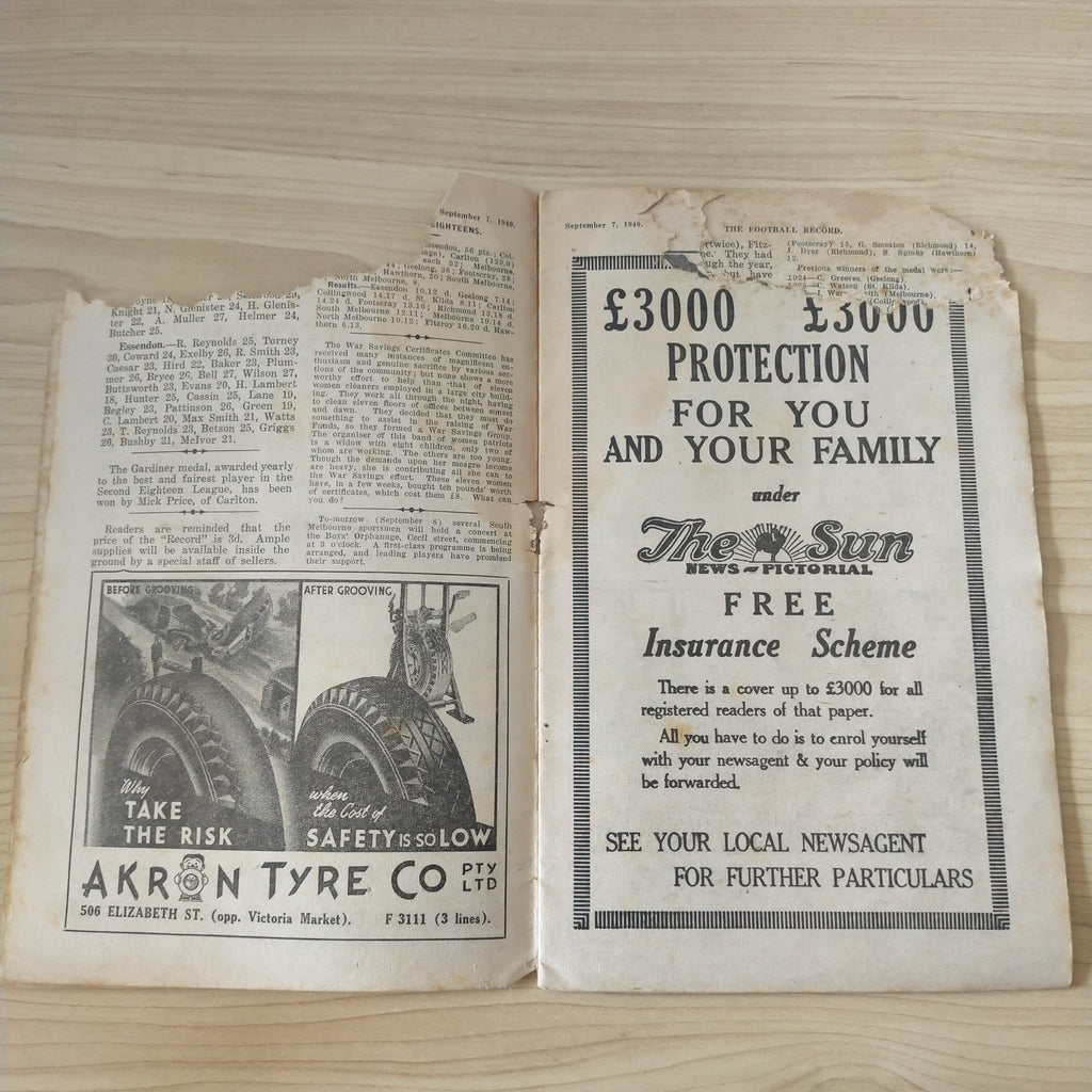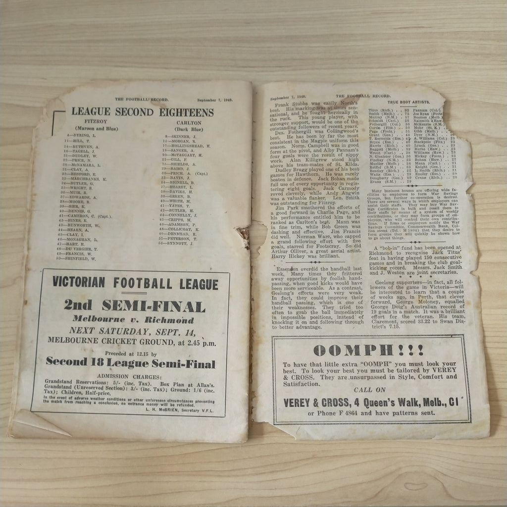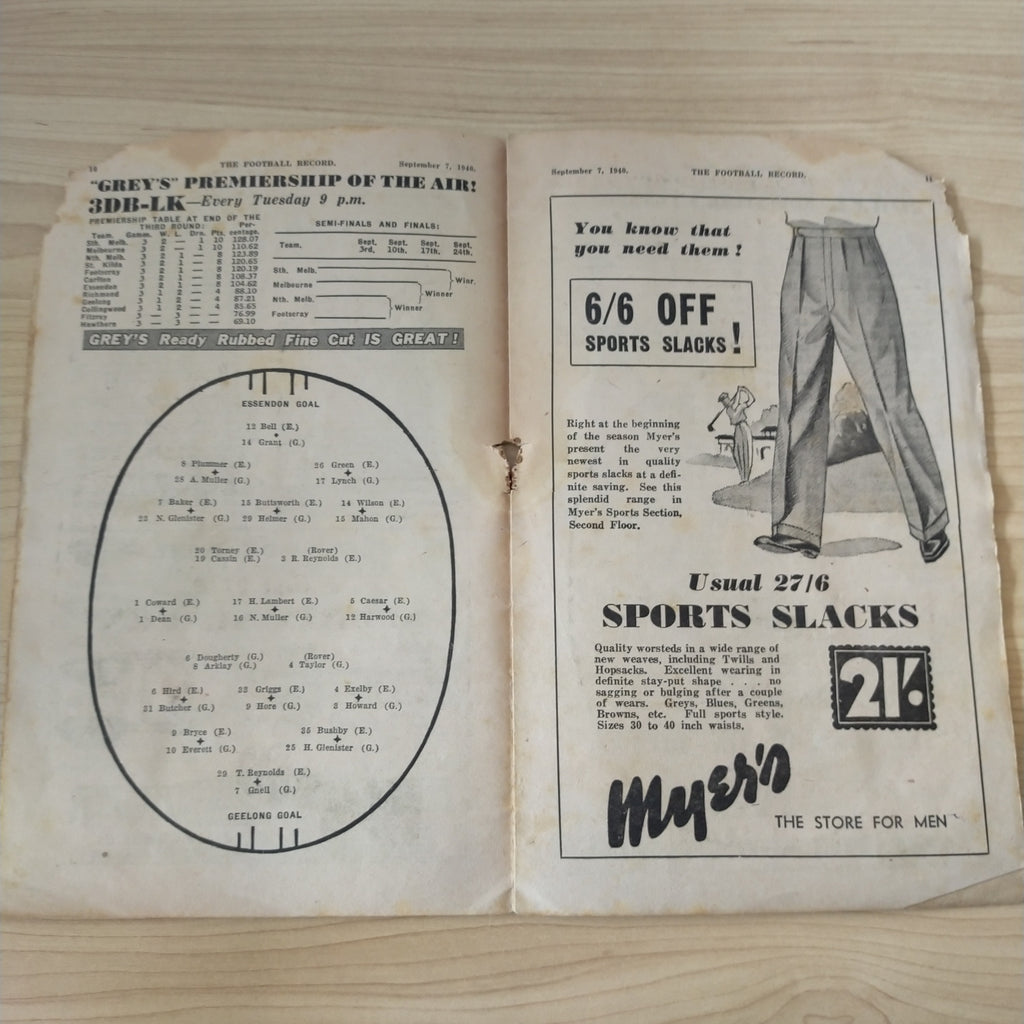 1940 September 7 1st Semi Final Essendon v Geelong Football Record
