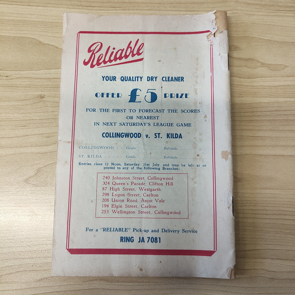 1954 Interstate Souvenir Football Record South Fremantle v Collingwood
