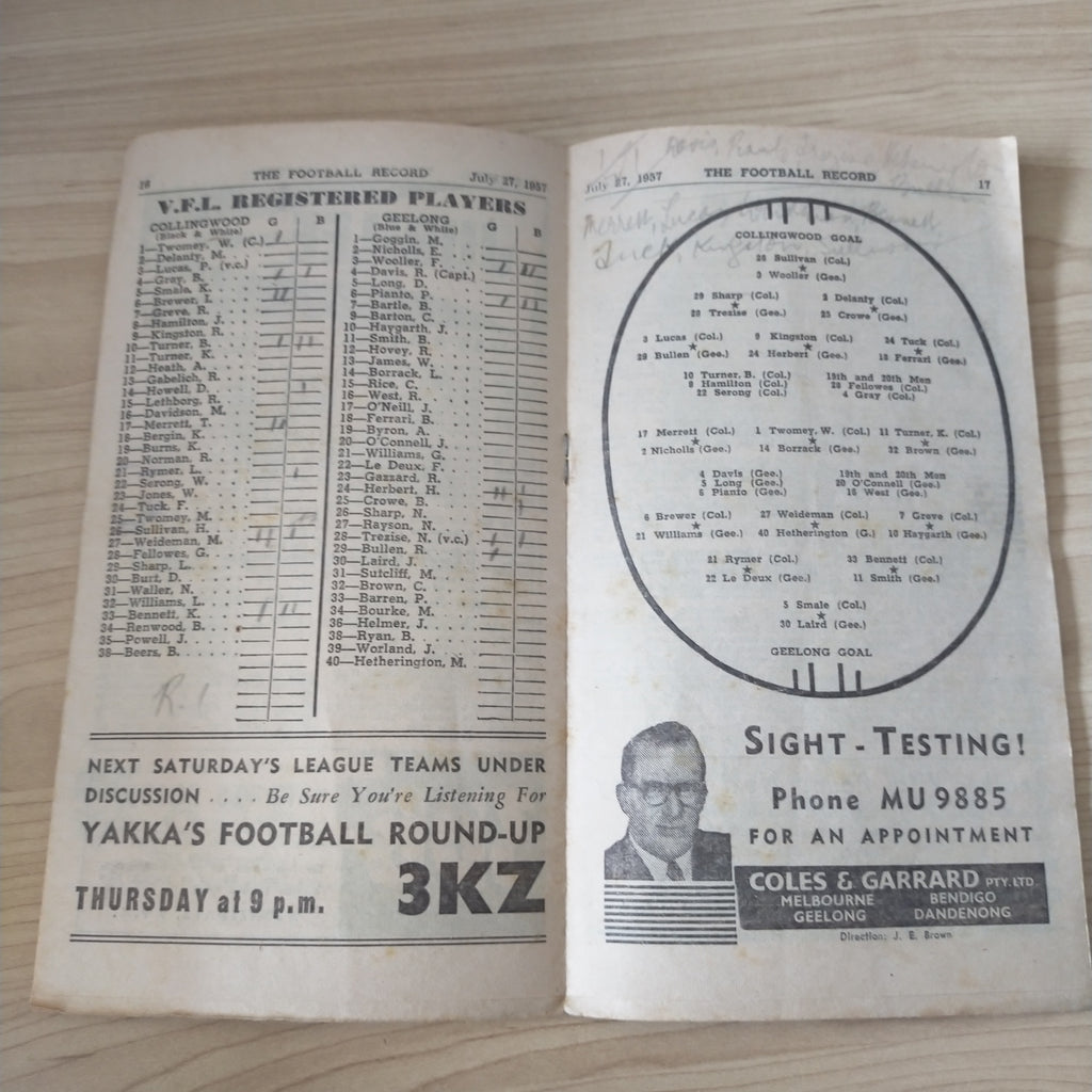 VFL 1957 July 27 Collingwood v Geelong Football Record