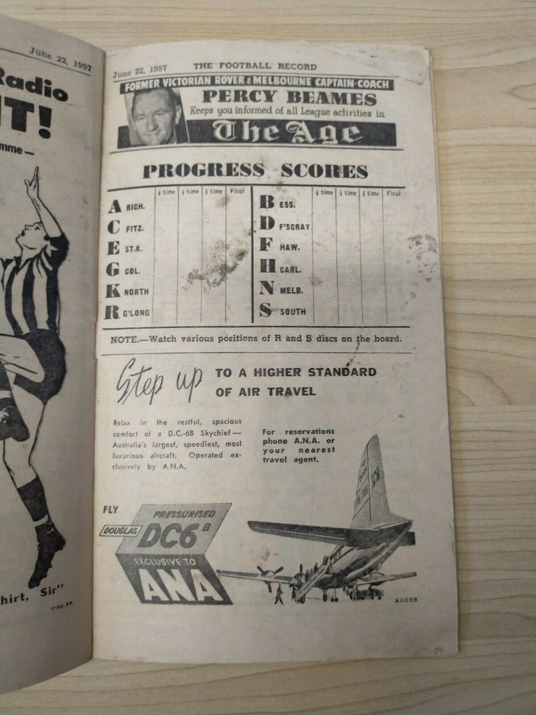 1957 June 22 VFL Football Record Collingwood v Carlton