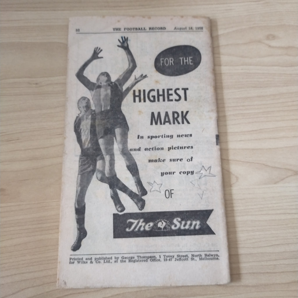 VFL 1958 August 16 Geelong v Footscray Football Record