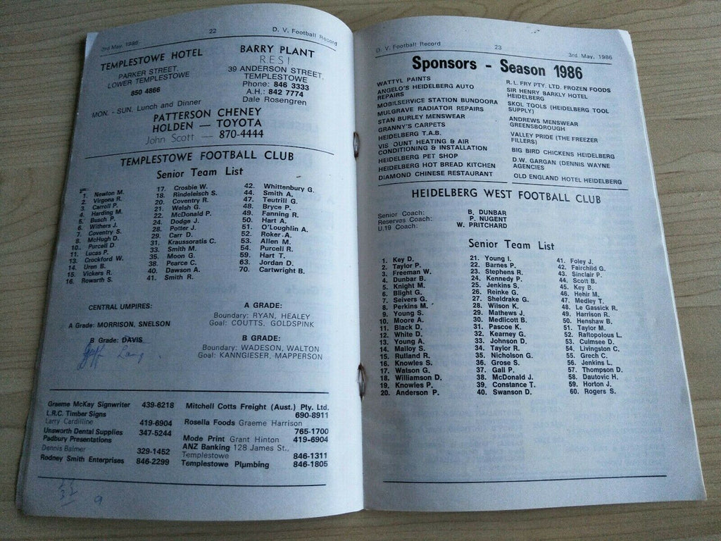 1986 3rd May Diamond Valley Football League Football Record Vol. 30, No. 5