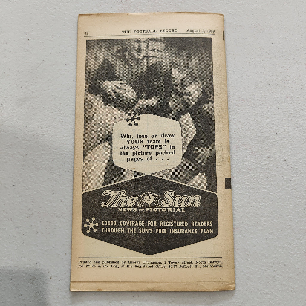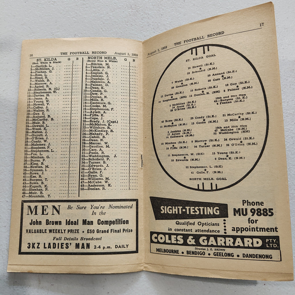 VFL 1959 August 1 St Kilda v North Melbourne Football Record