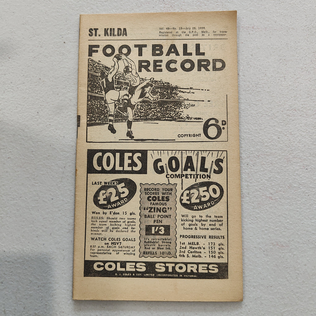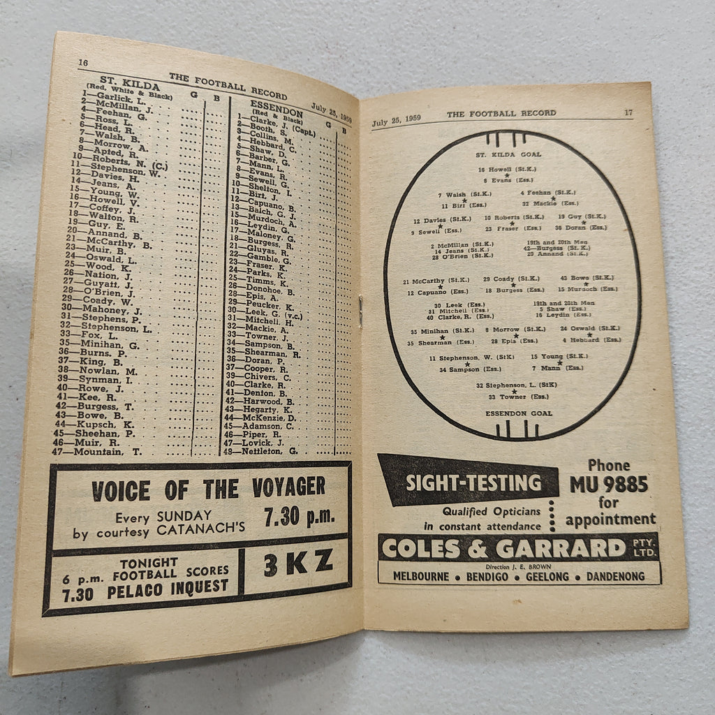 VFL 1959 July 25 St Kilda v Essendon Football Record