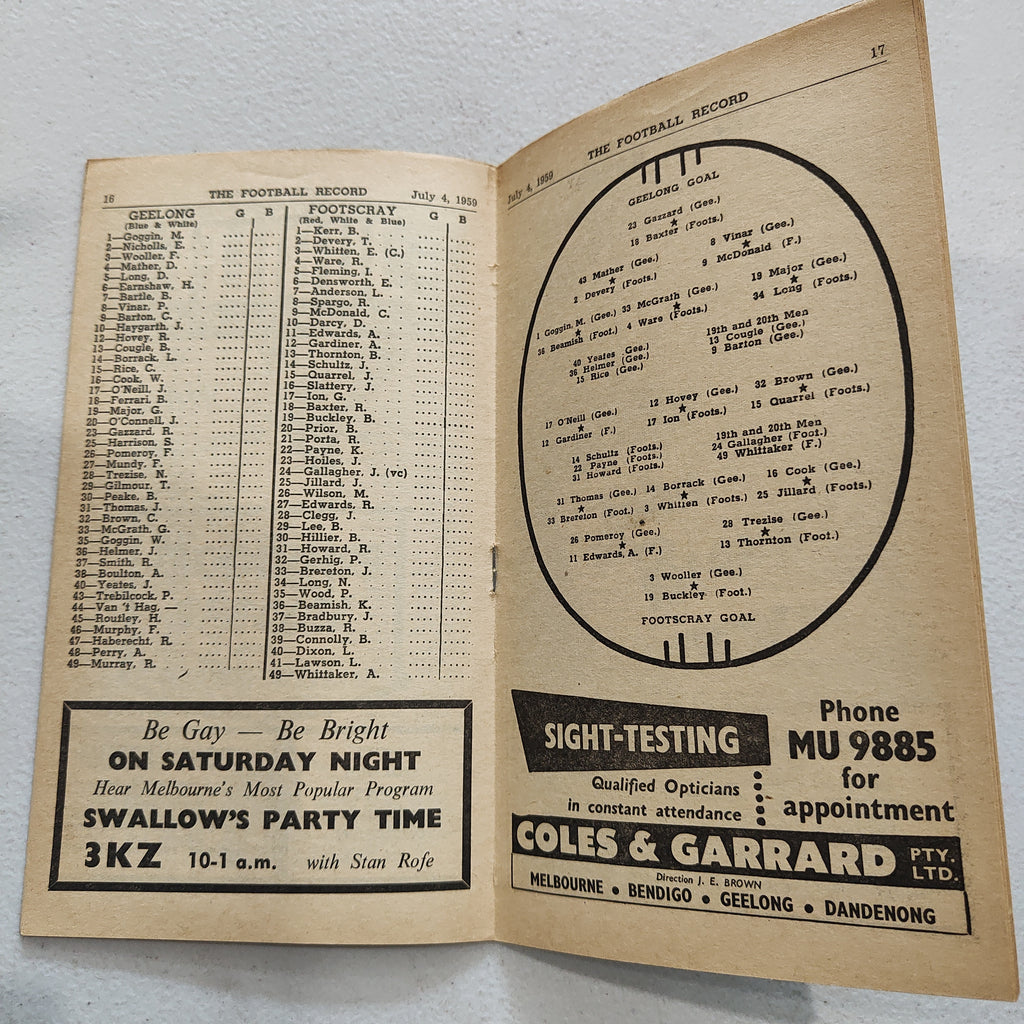 VFL 1959 July 4 Geelong v Footscray Football Record