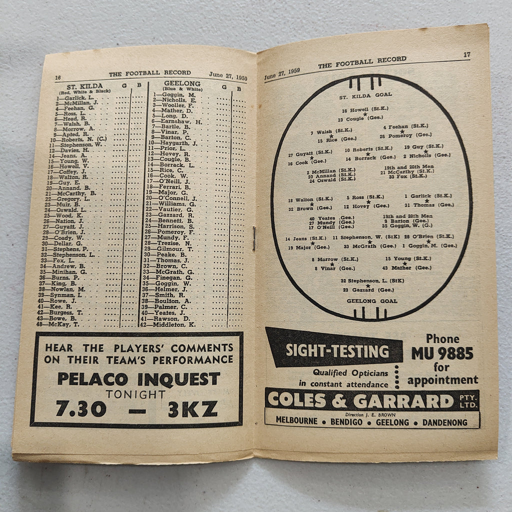 VFL 1959 June 27 St Kilda v Geelong Football Record