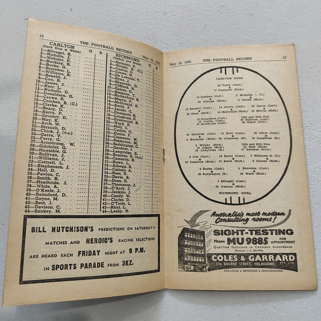 VFL 1959 May 16 Carlton v Richmond Football Record
