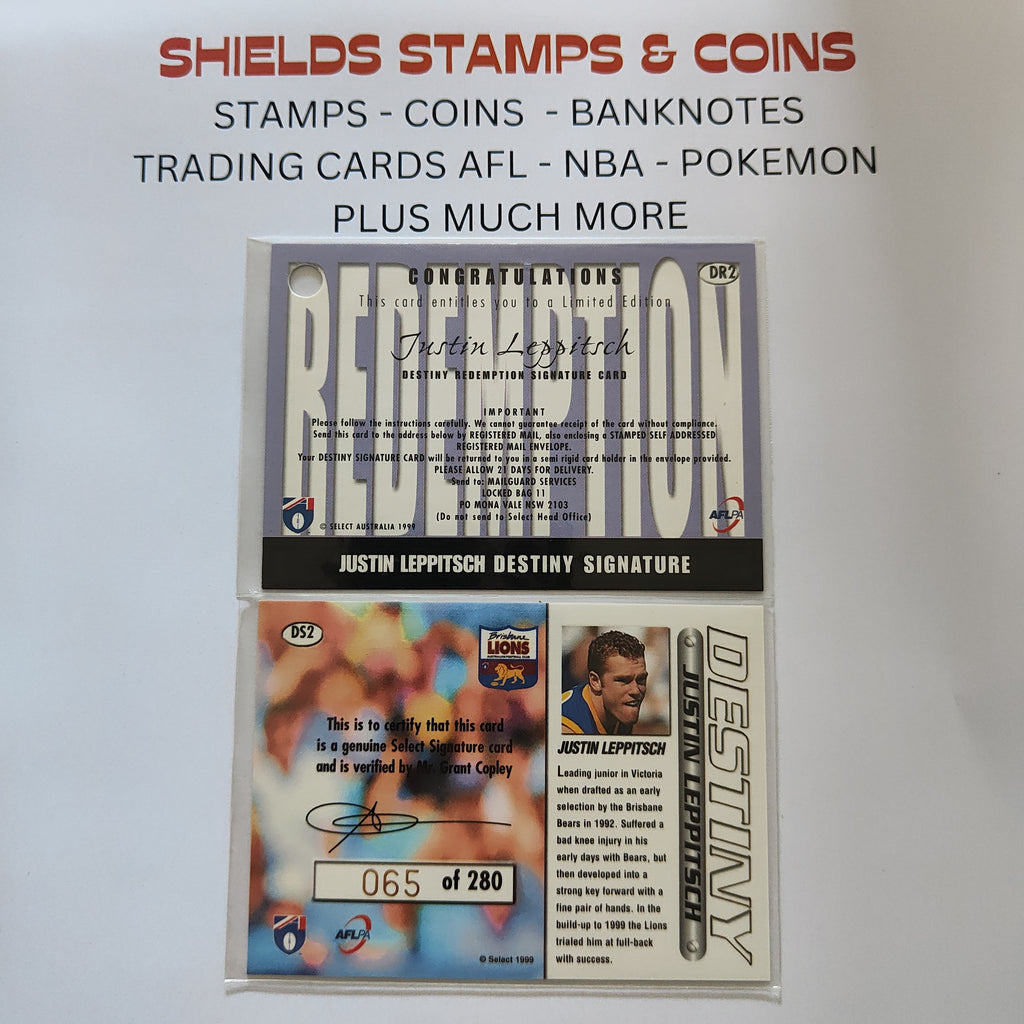 1999 Select Destiny Signature Redemption Justin Leppitsch Brisbane No.065/280