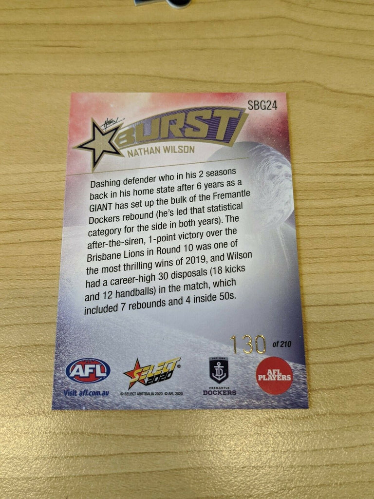 2020 AFL Footy Stars Galactic Burst Nathan Wilson Fremantle 130/210. Condition is New. Sent with Standard delivery.