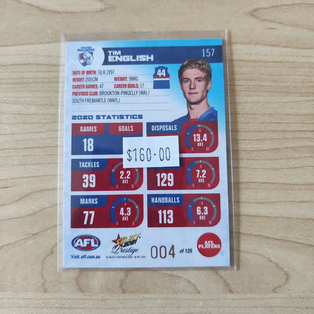 2021 AFL Select Prestige Blue Parallel Tim English Western Bulldogs LOW NUMBER No.004/125