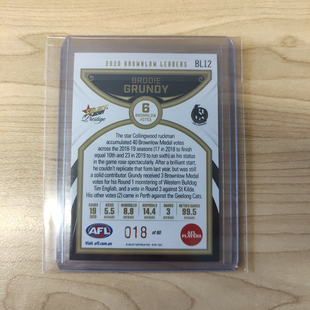 2021 AFL Select Prestige Brownlow Leaders Brodie Grundy Collingwood 18/80