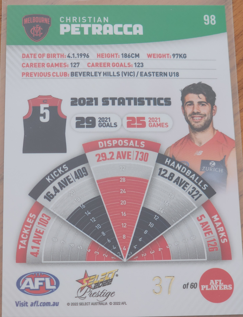 2022 AFL Select Prestige Christian Petracca Melbourne 37/60