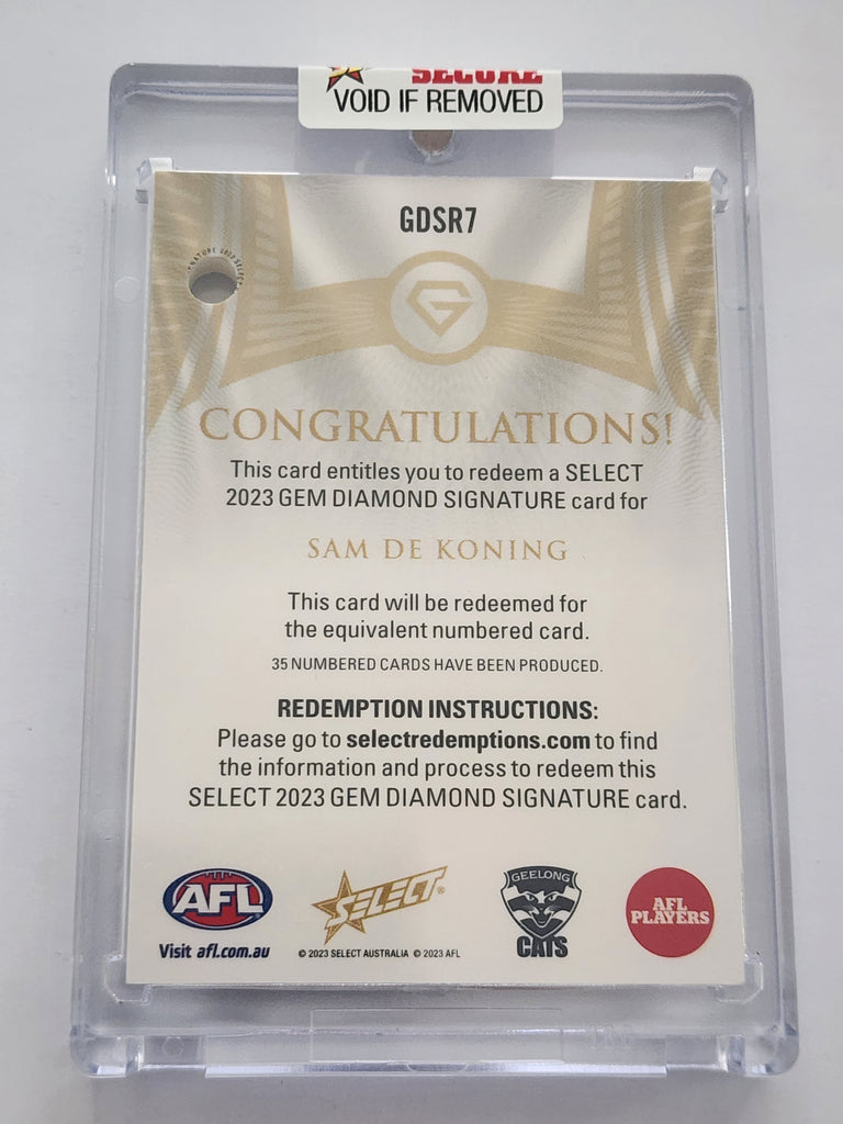 2023 AFL Select GEM Sam De Koning Diamond Signature Redemption cards 24/35 Geelong Cats