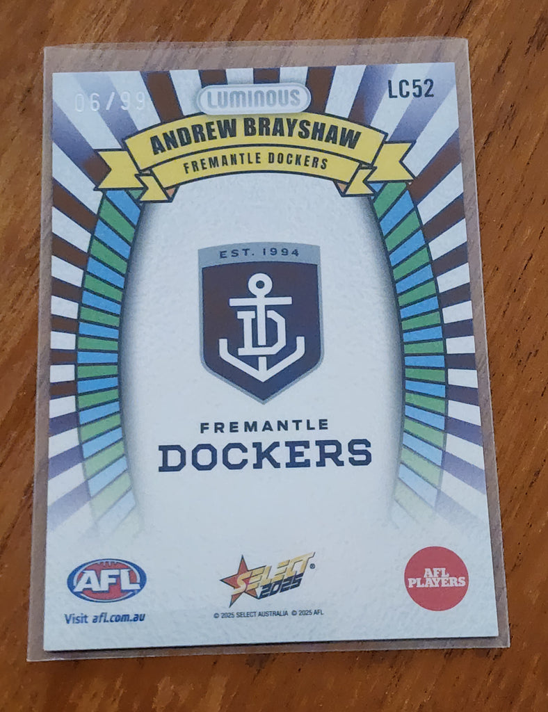 2025 AFL Select Hobby Footy Stars Luminous Carnival Andrew Brayshaw Fremantle LC52 LOW 6/99