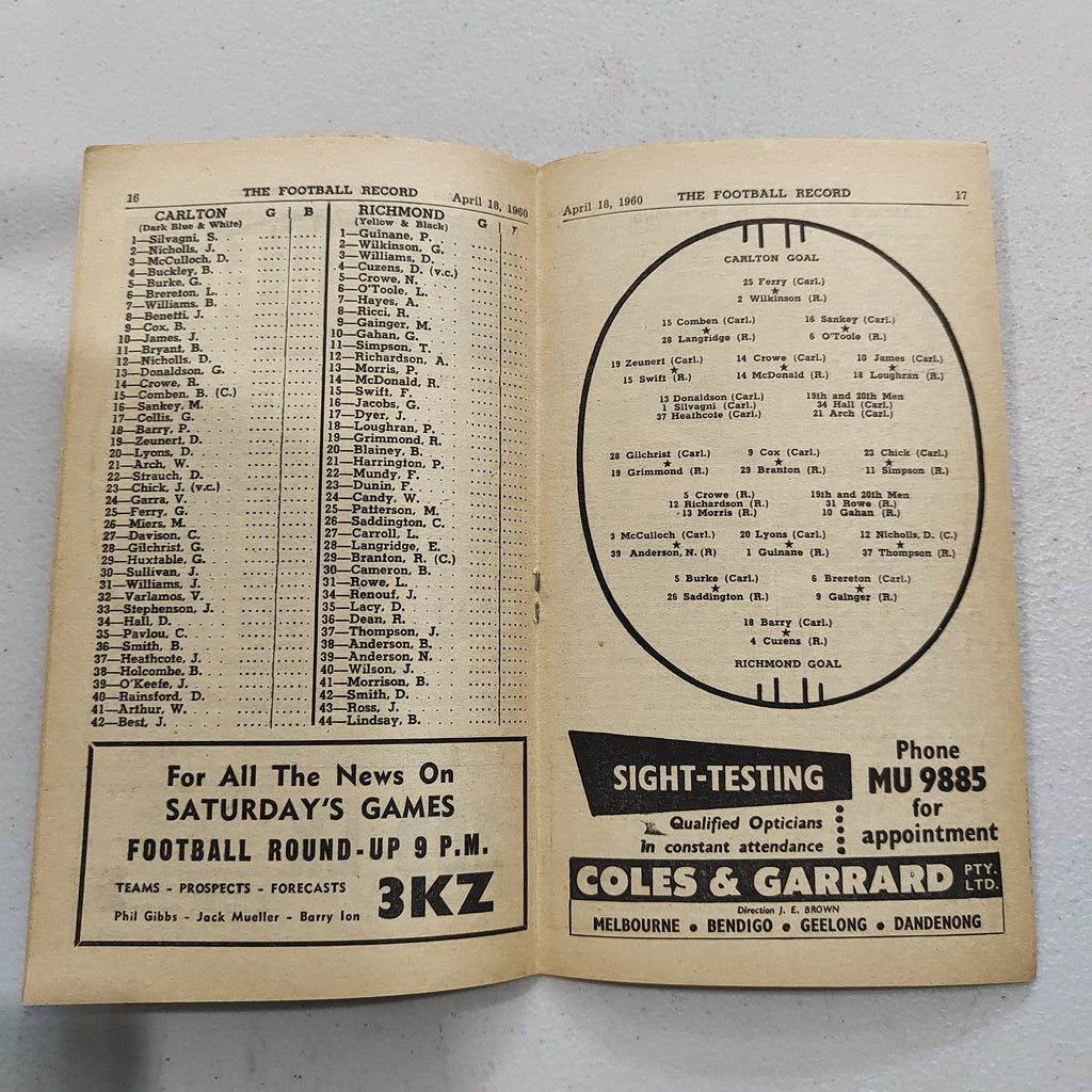 VFL 1960 April 18 Carlton v Richmond Football Record