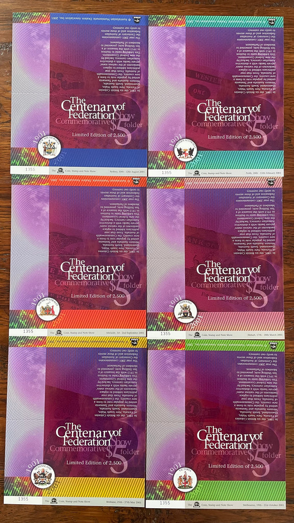 Australia 2001 ANDA set of 6 Federation $5 Polymer Banknote Folders.