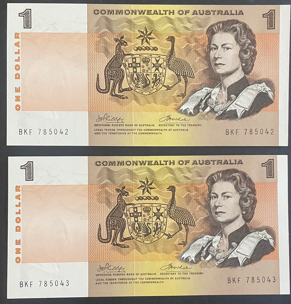 Australia 1974 R74 $1 Commonwealth of Australia Phillips/Wheeler Uncirculated PAIR