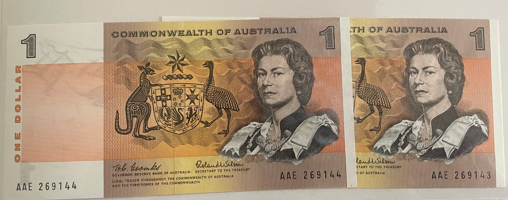 1966 $1 Commonwealth Of Australia Coombs/Wilson consecutive pair Banknotes. Sent with Standard Delivery - Registered.