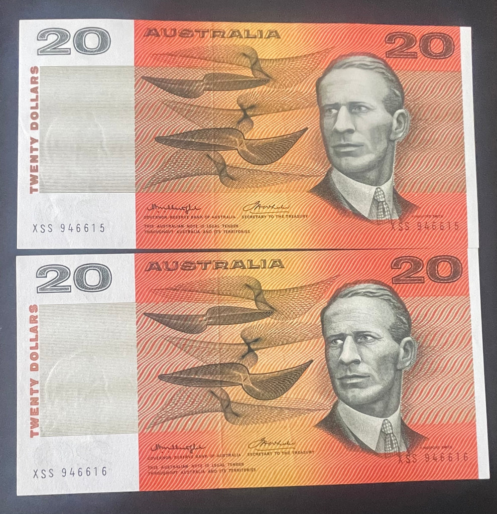 Australia 1976 $20 R406a Knight Wheeler Centre Tread Light Fold Uncirculated Consecutive Pair