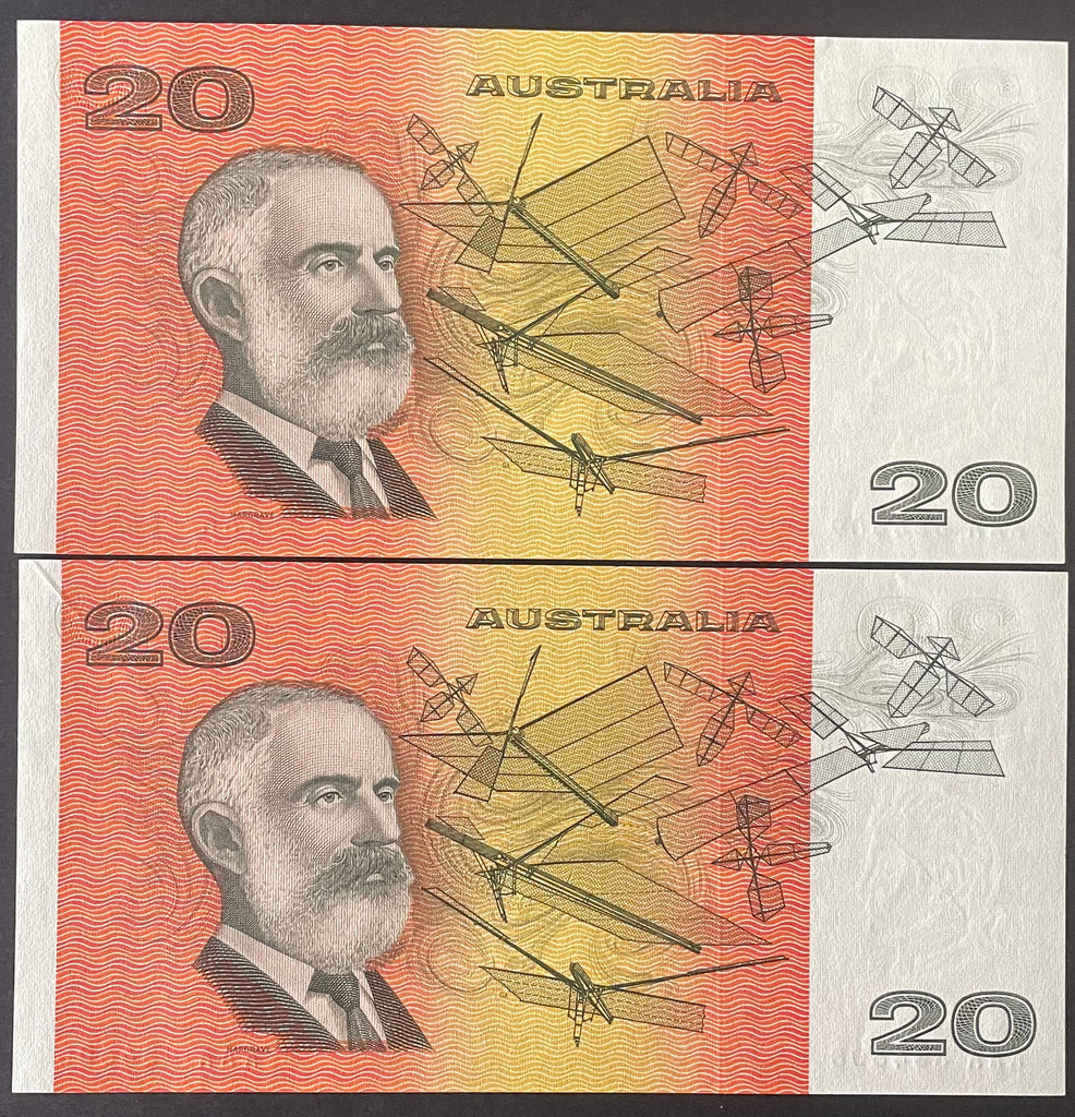 Australia 1991 $20 AAA Fraser Cole R413i Uncirculated Consecutive Pair.