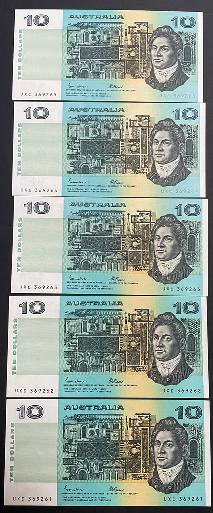Australia $10 Banknote Johnston Fraser Run of 5. R309