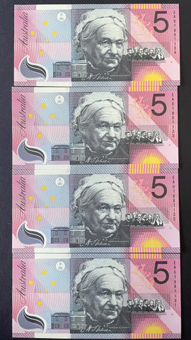 Australia 1995 $5 Evans Fraser Polymer Banknote Uncirculated Run of 4. R217bL