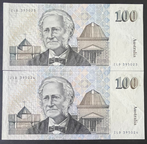 Australia 1983 $50 Johnston Stone Uncirculated Banknote Pair R508