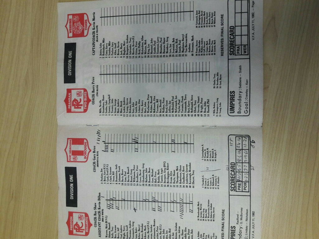 Football 1982 VFA Victorian Football Association July 11 Preston v Port Melbourne Recorder Magazine