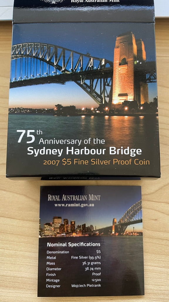 Australia 2007 $5 Sydney Harbour Bridge Royal Australian Mint 1 oz Silver Proof Coin
