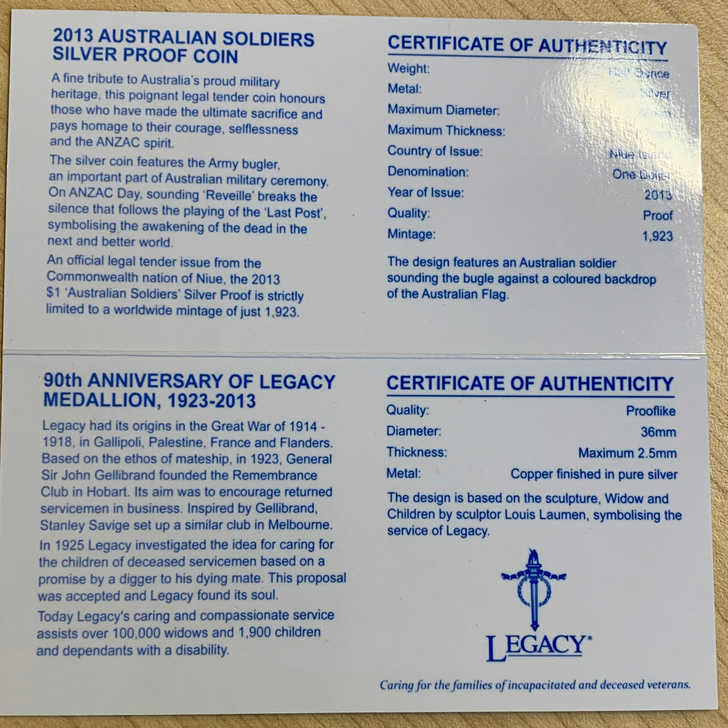 Niue 2013 $1 Australia Legacy 1/2 oz silver Proof Coin & 1/2 oz Medallion