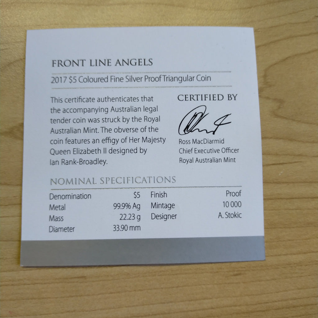 2017 Royal Australian Mint $5 Front Line Angels .999 Proof Silver Triangular Coin