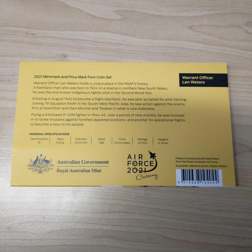 2021 Royal Australian Mint Heroes of the Sky Air Force Centenary Mintmark and Privy Mark Four Coin Set