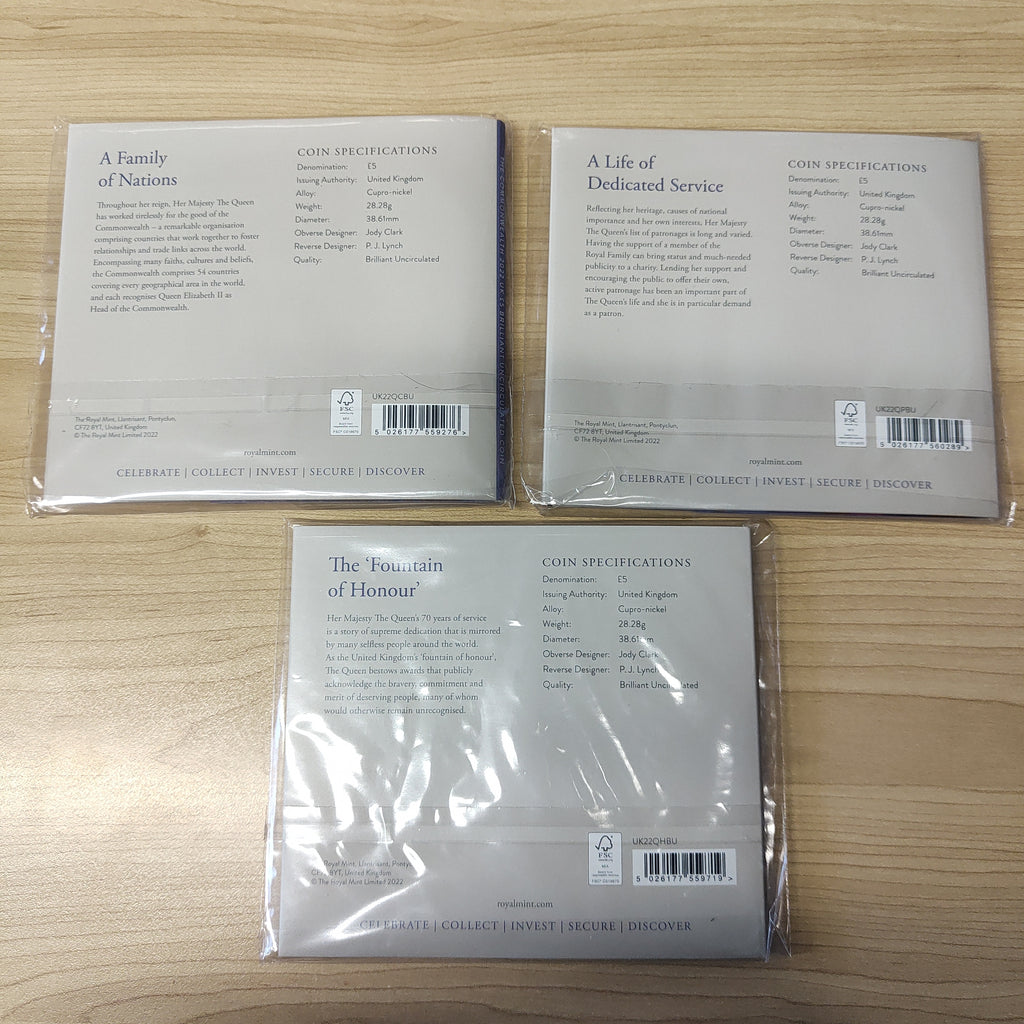 2022 GB The Royal Mint £5 The Queen's Reign Set of 3 Uncirculated Coins
